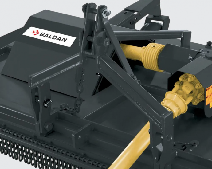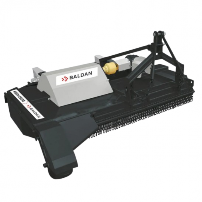 La Rotativa Baldan modelo RDDE 2,60 fue diseñada para trabajar con el material rozado esparcido o direccionado cerca del tallo de las plantas, tiene acoplamiento al tercer punto del tractor, es ideal para rozadas debajo de la copa de los árboles.